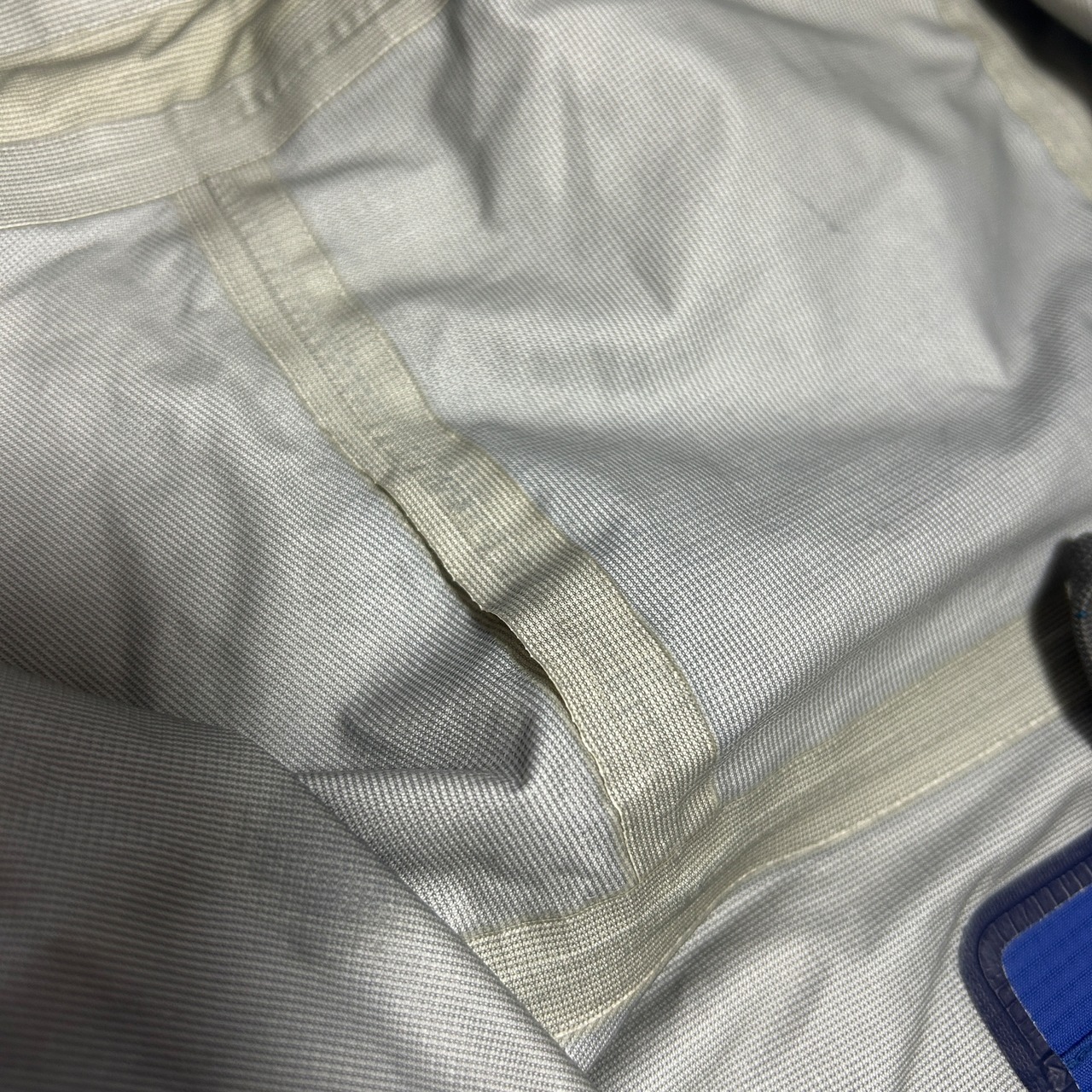 ジップの最上部左右に薄汚れとシームテープが少し剥がれてます。(写真10,11,12枚目)